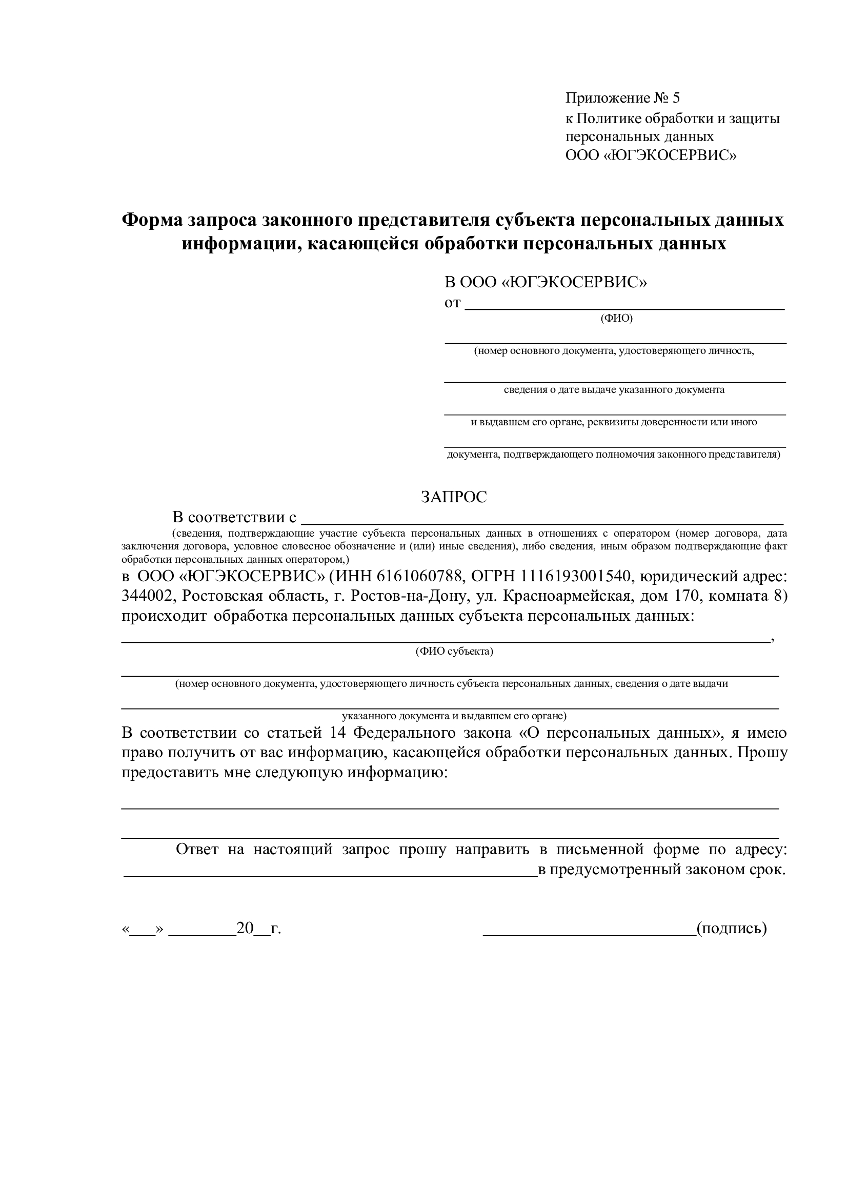 1.4.5. Субъект персональных данных имеет право обжаловать действия либо бездействие Общества, обратившись в уполномоченный орган по защите прав субъектов персональных данных (территориальное подразделение Роскомнадзора).